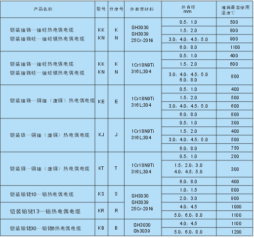 1.2.2 貴金屬鎧裝熱電偶電纜執(zhí)行JB/T 8909-1999
